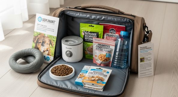 - Spray apaisant ou phéromones : utilisez des sprays à base de phéromones (Feliway, Adaptil…) 30 minutes avant le départ. Pour certains chiens, des diffuseurs ou colliers apaisants existent également.